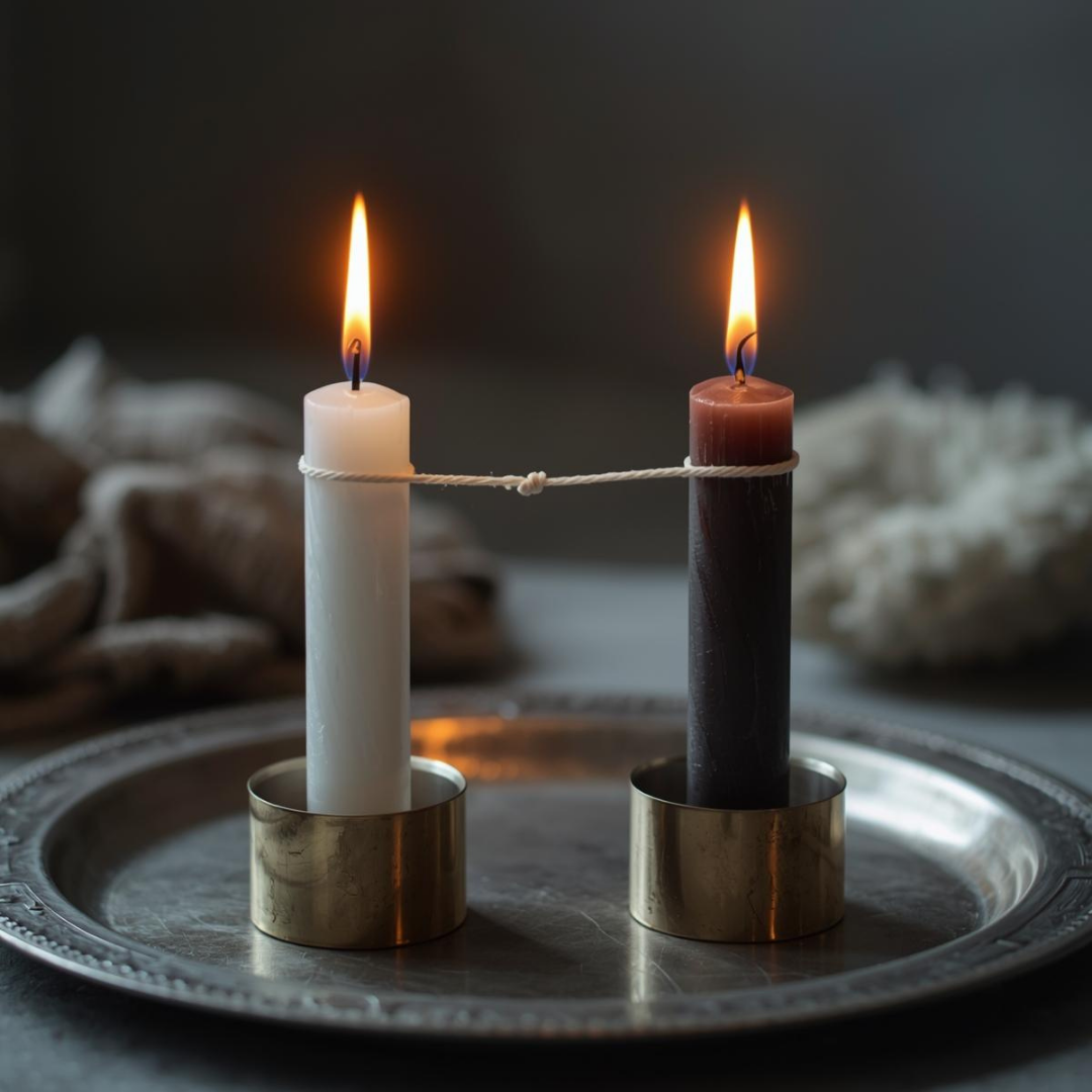 2. Corte com Duas Velas (Divórcio Energético): Ideal para términos de relacionamentos amorosos ou amizades, separando as frequências de forma harmônica.