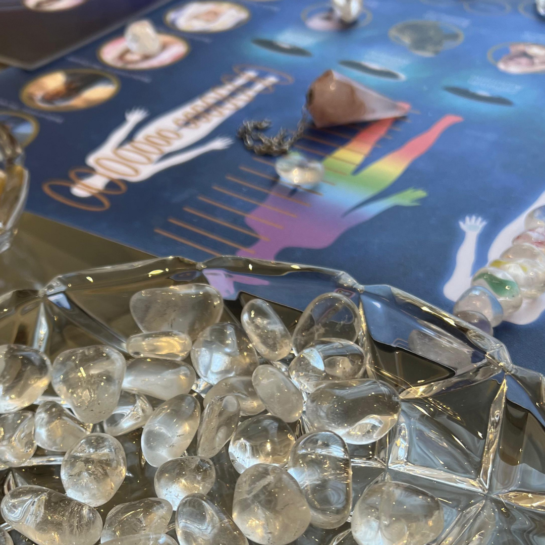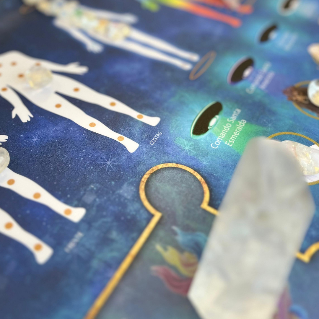 Durante a sessão da Mesa Cristalina, o foco está na leitura, limpeza e harmonização do campo energético, respeitando o que se apresenta como prioridade naquele momento.
